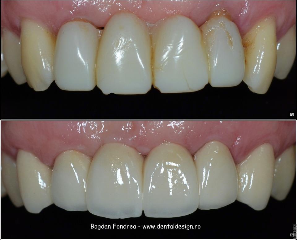 Cel mai important aspect al acestui caz, prezentat mai jos a fost modelarea gingiei, pentru a primi forma papilei interdentare ca in cazul dintilor sanatosi.